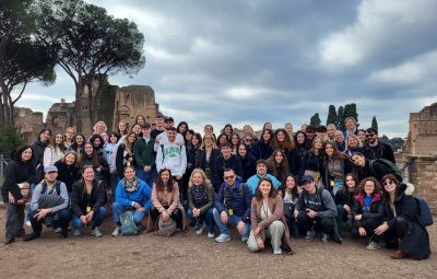 Am Sonntag, den 04.02.2024, starteten die sechs Schüler*innen des Global Studies Kurses der Eingangsklassen und drei Lehrerinnen zusammen am Flughafen ihre Reise. Nach dem Flug wurden alle von ihren Gastschüler*innen und Gastfamilien herzlich in Rom empfangen. Der erste Tag begann in der Schule mit einem Rundgang durch alle vier Schulgebäude. Die Schule „Liceo Luis Pasteur“ ist als die „grüne Schule“ bekannt, da sie von Bäumen und Grünflächen umgeben ist und einen naturwissenschaftlichen Schwerpunkt hat. Nach dem Schulrundgang berichteten ein paar italienische Schülerinnen ihren Gästen aus den verschiedenen Nationen über das italienische Schulsystem.