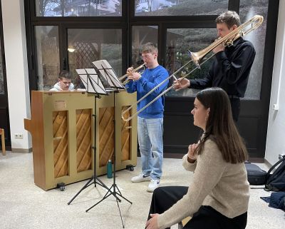 Im Rahmen eines besonderen Projekts hatte letzte Woche eine zweite Gruppe von Schülerinnen und Schülern der Musikkurse BG 1 und BG 2 unserer Schule am 15. Januar 2025 die Gelegenheit, ihre musikalischen Talente im Seniorenzentrum St. Lukas in Wernau zu präsentieren. Der Besuch stellte erneut die Kraft der Musik als Brücke zwischen Jung und Alt in den Mittelpunkt. Nach intensiver Vorbereitung war der Auftritt im Seniorenzentrum ein voller Erfolg. Die Jugendlichen hatten ein abwechslungsreiches Programm zusammengestellt, das sowohl klassische Stücke als auch moderne Melodien umfasste. Unser Gast Bruno Patta (Klavier) brachte zusammen mit Stefan Scheufele (Posaune) aus dem Musikkurs eine Vorab-Uraufführung seines Posaunenkonzerts zu Gehör, welche uns alle sehr beeindruckte.