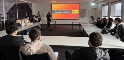 Im Konferenzraum durften die Schüler:Innen zunächst bei einer Power Point Präsentation nicht nur Besprechungsluft schnuppern, sondern auch interessante Informationen über die Unternehmensgeschichte, verschiedene Ausbildungsberufe, sowie wertvolle Einblicke in den Bewerbungsprozess erfahren.