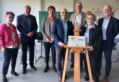 Bei der Feierstunde waren zahlreiche Vertreterinnen und Vertreter aus Politik und Schulverwaltung anwesend, die die Bedeutung des Schulterschlusses unterstrichen: Schulamtsdirektorin Frau Dr. Corina Schimitzek, Oberbürgermeister Pascal Bader und Landrat Marcel Musolf.